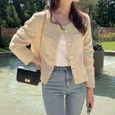 세터 남녀공용 칼라리스 투 톤 트위드 자켓
