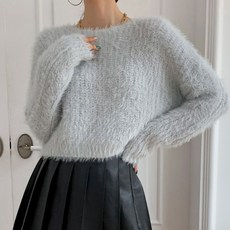 뜨개진 여성용 루즈핏 보트넥 부드러운 털 일로카 니트