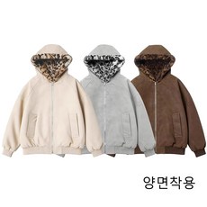 ROYALBELLE 남녀공용 양면착용 레오파드 후드 포켓 방한 따뜻한 캐주얼 PU 자켓 코트 S0112806