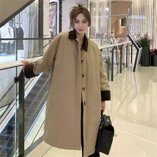 봄 가을 코트 심플 샤프트 울 코트 두툼 헵번 스타일 포켓 탑재 여성 블랙 슬림 미디 길이 더블 버튼 트렌치 코트 빅사이즈