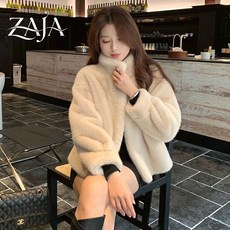 POMTOR 겨울 여성용 밍크 코트 숏 패션 배색 재킷