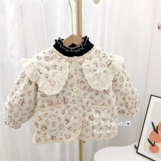 여아 아동 겨울 코디 룩 레이스 카라 누빔 점퍼 따뜻한 자켓