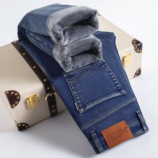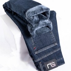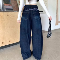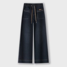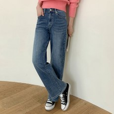 AOKADA 중년 여성 겨울 기모 도톰 하이웨스트 데님 바지 드롭 일자핏 와이드 팬츠