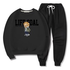 일루소 남녀공용 소프트 기모 라이프고울 맨투맨 조거 트레이닝복 상하의 세트