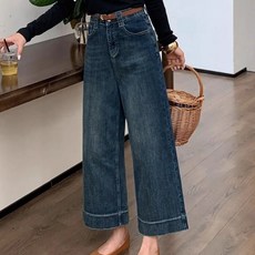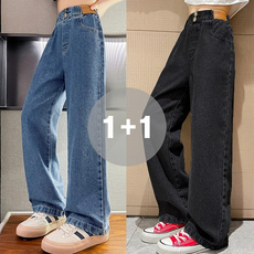 지디오 주니어 여아 밴딩 와이드 데님 팬츠 2개 세트 기모 싱글 초등 학생 스트레이트 청바지