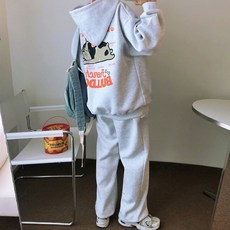 러브앤시티 남녀공용 *특양면/기모 선택* 프렌치불독 후드 트레이닝세트 스트링팬츠 상하세트 오버핏 빅사이즈 후드티 셋업