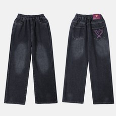 달콩슈 주니어용 하트 자수 도톰 기모 청바지 데님 아동 성인까지 DKW120
