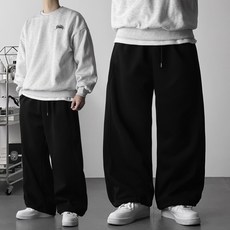 오프앤 기모 남자 트레이닝 사이드 라인 벌룬 스트링 조거 스웻 와이드 팬츠