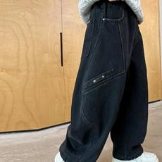 달콩슈 남아용 기모 와이드 블랙 청바지 커트 라인 데님 팬츠 DKW174