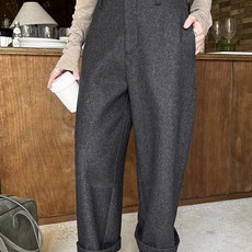 로엠 여성용 리 올데이 기모 원턱 와이드 밴딩 슬랙스