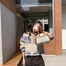 투니스 여성 눈꽃무늬 카라 집업 니트 가디건