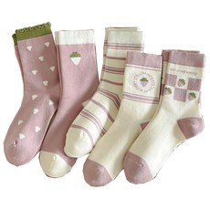 Wenyao 가을 겨울 스위트 딸기 웜 중목 울 핑크 시리즈 여성양말세트 5개입