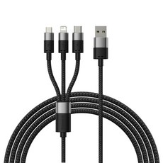 BASEUS CB000030 스타 스피드 시리즈 1대3 고속충전 데이터 케이블, 1개, 1.2m, 블랙