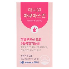 한국콜마 1박스(1개월분) 콜라겐 히알루론산 애니원아쿠아스킨/ 6중복합기능성 비오틴 비타민A 비타민E 판토텐산 아연, 한국콜마 1박스1개월분 콜라겐 히알루론산 애니원아쿠아스, 1박스, 60정