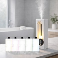 21세기 트랜드 미르 자동분사 무드등 디퓨저 대용량 선물용 올인원 방향제 + 리필, 5종(오션 쿨미스트, 코튼 캔디, 바닐라 라떼, 화이트 머스크, 화이트 피치), 1세트