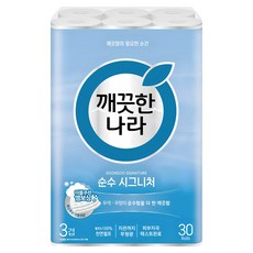 깨끗한나라 순수 시그니처 천연펄프 3겹 고급롤화장지, 27m, 30롤, 1개
