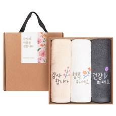 송월타월 감사 행복 건강 호텔 수건 130g 30수 면사 3p 선물세트, 베이지, 아이보리, 그레이, 1개