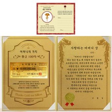 럭키심볼 감사장 1종 세트 은혜에 대한 이자 황금 10억 + 24K골드 카네이션 전자파 스티커 + 엄마의 최고밥 상, 1세트, 혼합 색상