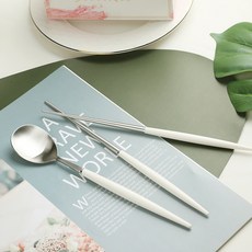 백산 보겐 국산 몽블랑 에펠 샤틴 수저 세트, 화이트, 숟가락 + 젓가락