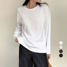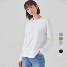 아피나르 여성용 릴렉스드핏 고밀도 순면 크루넥 긴팔 티셔츠