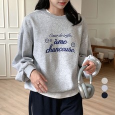 아피나르 여성용 볼드 레터링 자수 기모 스웻셔츠