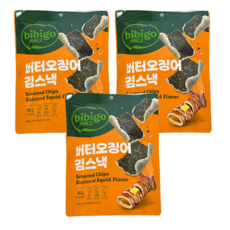 비비고 버터오징어 김스낵, 3개, 40g