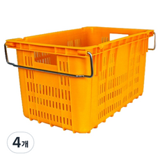 세화파렛텍 플라스틱 철고리 손잡이 농산물 과일 운반상자 이사박스, 노랑색, 4개