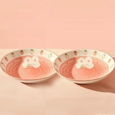 Tiger Pavilion 세라믹 원형 양수 대접, 스트로베리 래빗, 2개