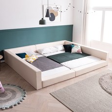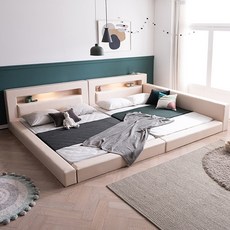 레브 기능성 패브릭 패밀리침대 슬림헤드 SS + SS 세트 방문설치, 크림베이지