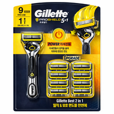 질레트 정품 프로쉴드 옐로우 파워 면도기세트, 핸들 + 면도날 8p, 1세트