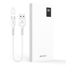 스피디 슬림 듀얼 보조배터리 20000mAh 듀얼포트 + C타입 케이블 + 8핀 젠더 세트, 화이트, SPE-B22PCPPB200A