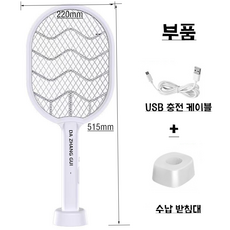 접이식 전기모기채 가정용 USB 충전식 모기퇴치기 자동 모기채 다용도 벽걸이 전기모기채, 흰색