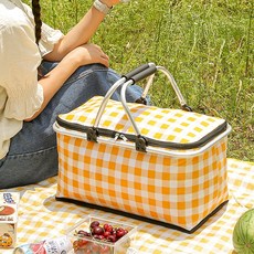 Tiger Pavilion 접이식 피크닉 보냉 바구니, 30L, 노란색