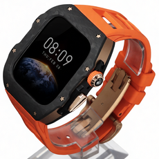 애플워치11/10 호환 일체형 실리콘 스트랩 탄소 섬유 보호 케이스 42mm 46mm, 오렌지-로즈골드 버클, 1개