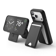 엘라고 맥세이프 스탠드 가죽 카드지갑 케이스, 블랙, 1개