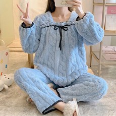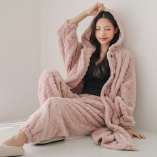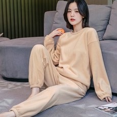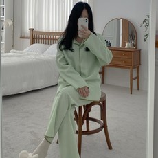 테라우드 커플용 피치 기모 스누그 카라 파자마 상하의 2p 세트