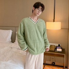 테라우드 남성용 후리스 포켓 수면잠옷 상하의 세트