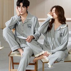 도씨 커플용 실크핏 에센셜 긴팔 잠옷 2세트 D-3657