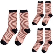 여성용 지그재그 롱 컬러 면 패션 양말 3켤레