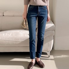 루나진 여성용 스판 슬림 일자핏 진청 청바지