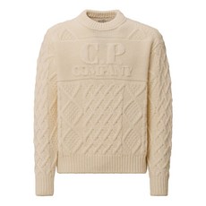 C.P.컴퍼니 로고 자수 케이블 니트 스웨터