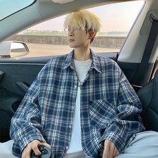 투니스 남성 체크 루즈핏 긴소매 셔츠