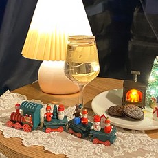 이플린 크리스마스 인테리어장식 미니어처 나무기차 + 원형러그, 그린 + 화이트, 1세트
