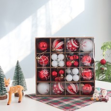 모리앤 조이크리스마스 혼합 트리장식볼 오너먼트 44p, 레드화이트, 1개