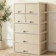 라탄 스마일 양면 서랍장, 베이지, 6개