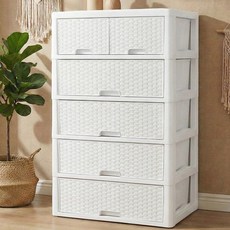 라탄 스마일 양면 서랍장, 화이트, 6개