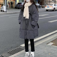 투니스 여성 스탠드카라 다운 버튼 미드 롱 패딩