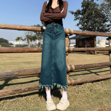 투니스 여성 하이웨이스트 A라인 롱 데님 스커트