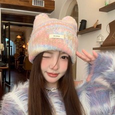 투니스 여성 고양이 귀 모양 따뜻한 니트 모자
