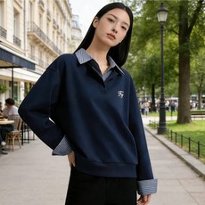 투니스 여성 루즈핏 투피스 디자인 배색 긴소매 맨투맨 티셔츠